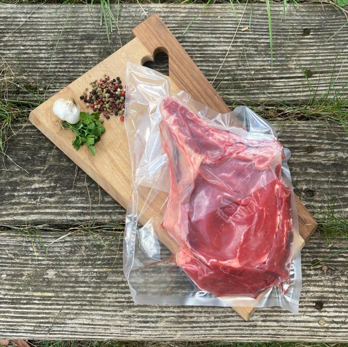 Côte de boeuf, race limousine, agriculture biologique, filmée puis mise sous-vide.