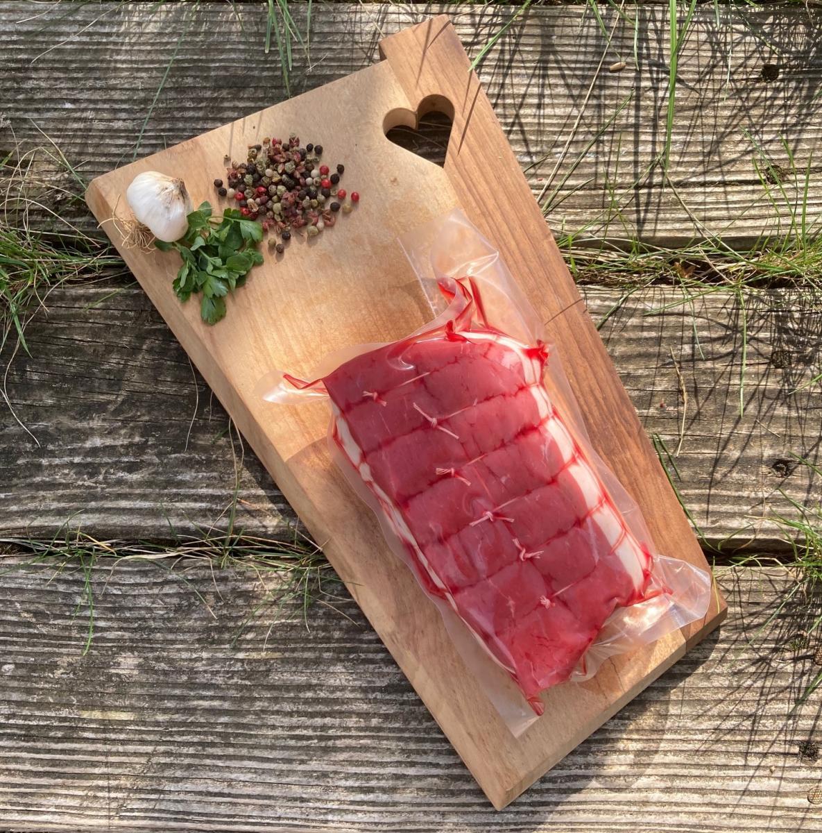 Bande de barde de porc sur le dessus, merci de préciser si vous ne la souhaitez pas.