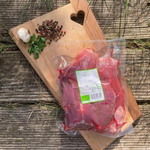 Sauté de veau sans os, élevé sous la mère, agriculture biologique, mis sous-vide. Environ 800G.