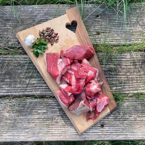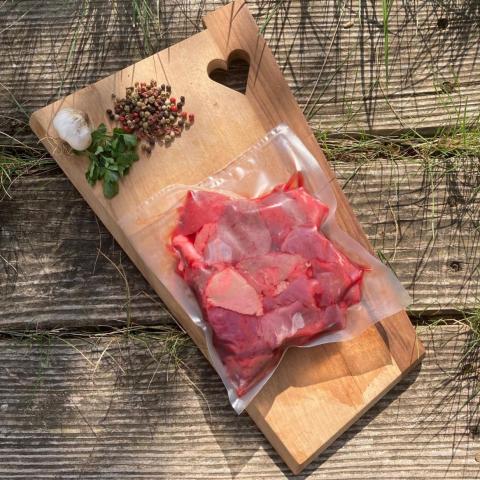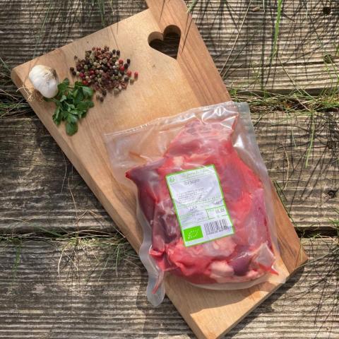 Viande à brochettes, morceaux tendres, viande race limousine, agriculture biologique, mis sous-vide. Environ 500 grammes