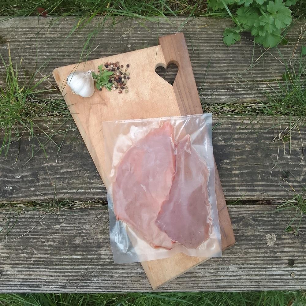 2 escalopes de veau, élevé sous la mère, agriculture biologique, mises sous-vide. Environ 400 grammes.