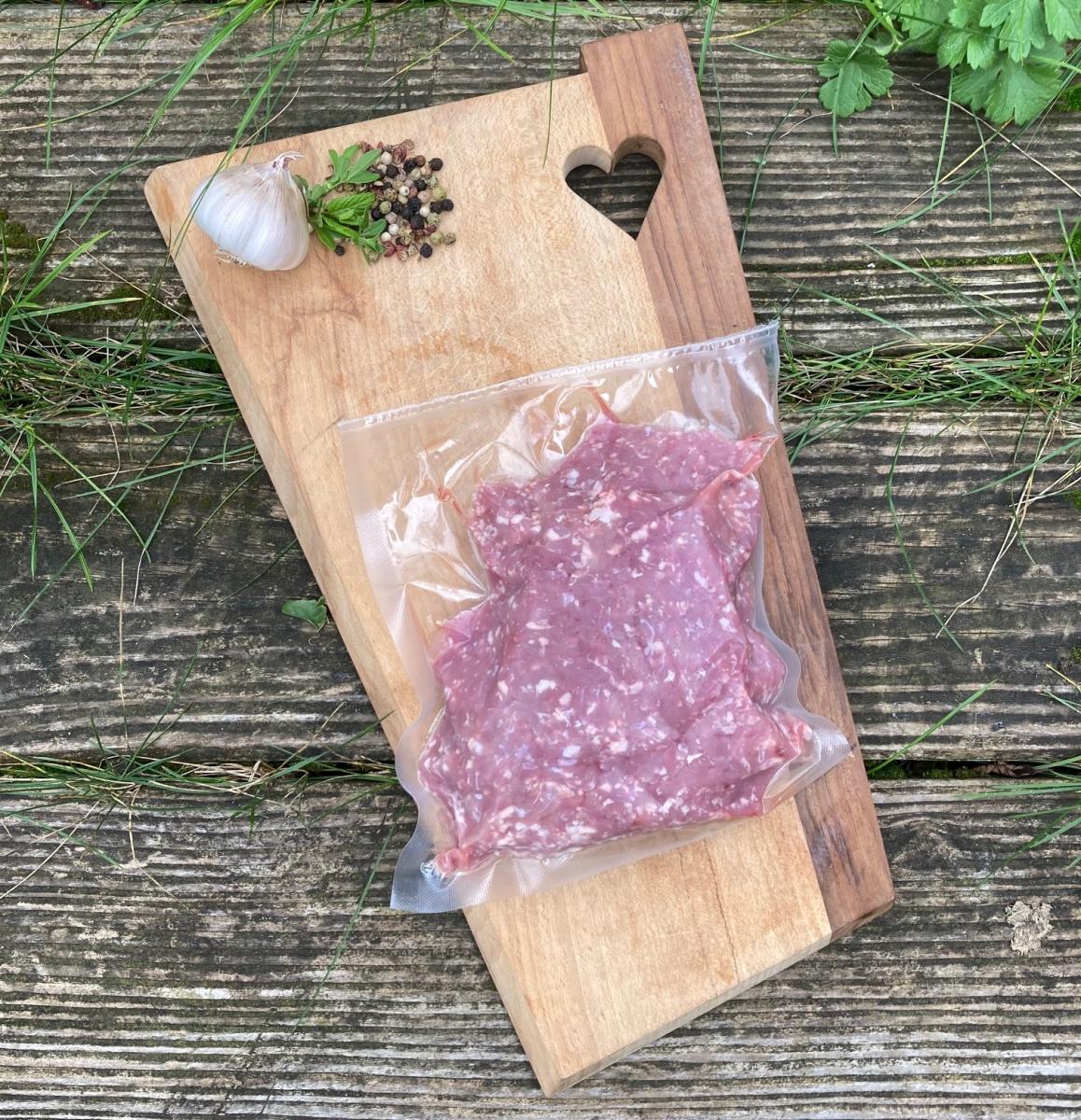 Veau élevé sous la mère, agriculture biologique, mis sous-vide.